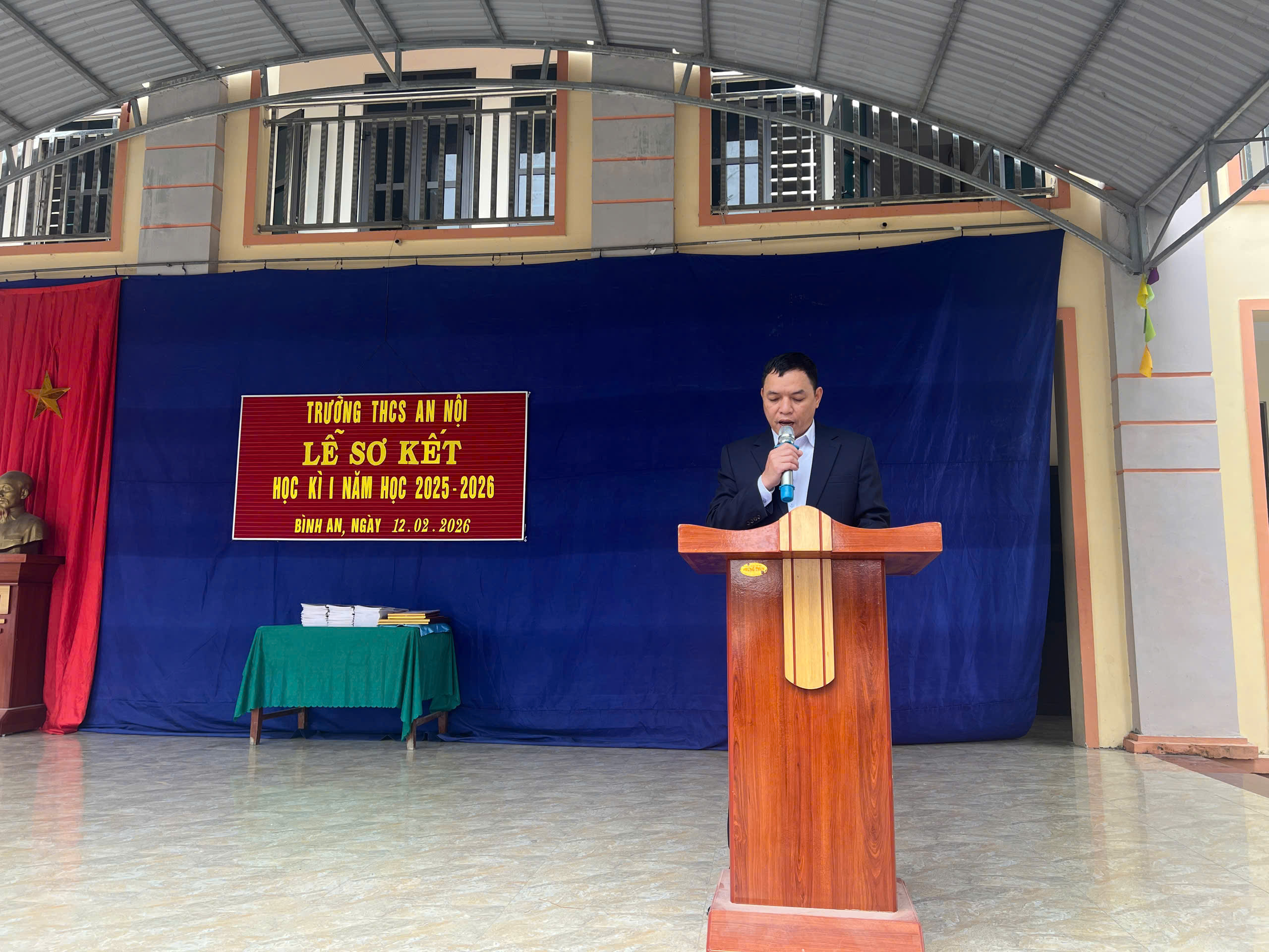 Thầy Nguyễn Văn Nhiên Bí thư chi bộ – Hiệu trưởng nhà trường báo cáo sơ kết học kì I năm học 2025 – 2026